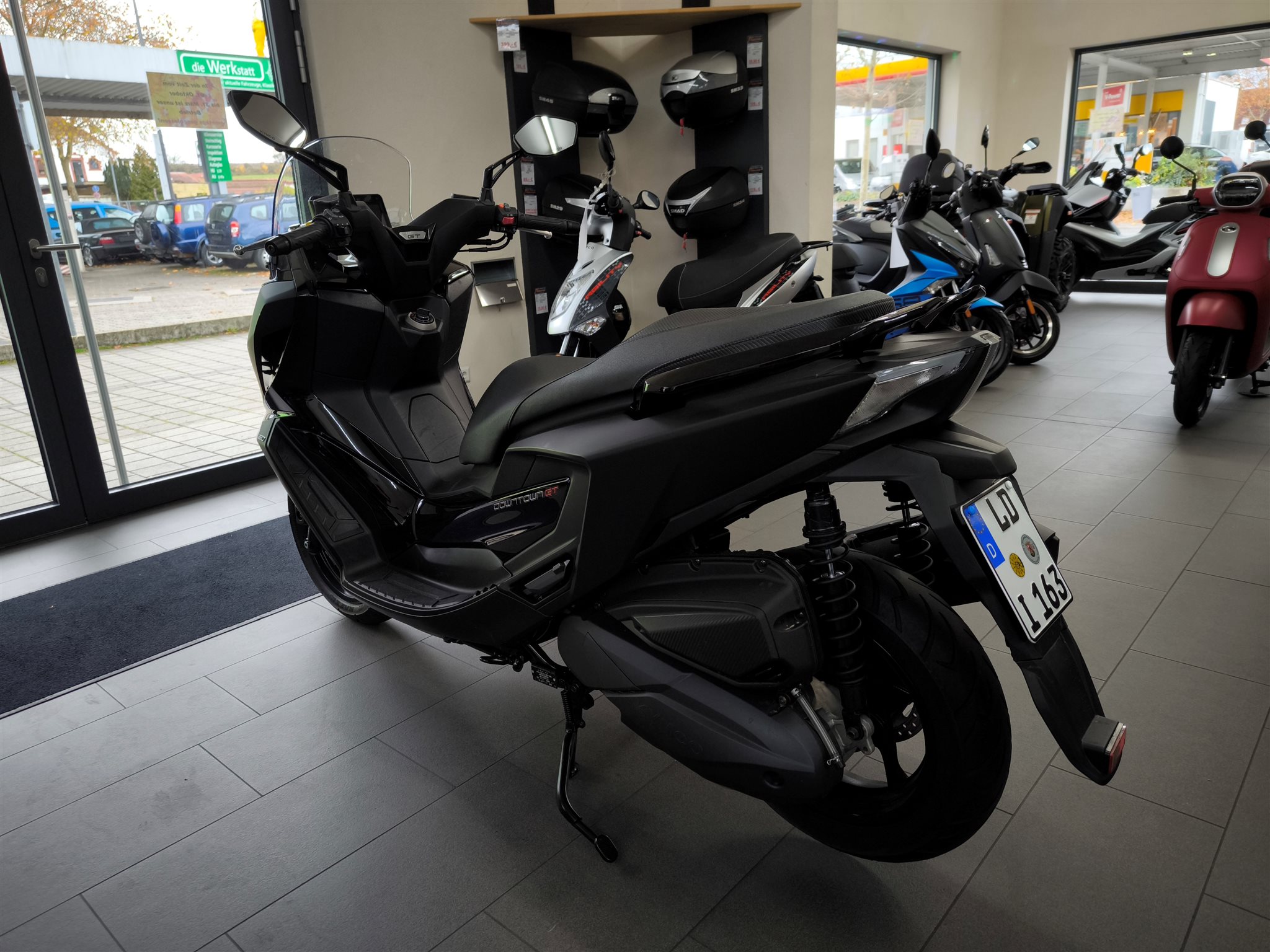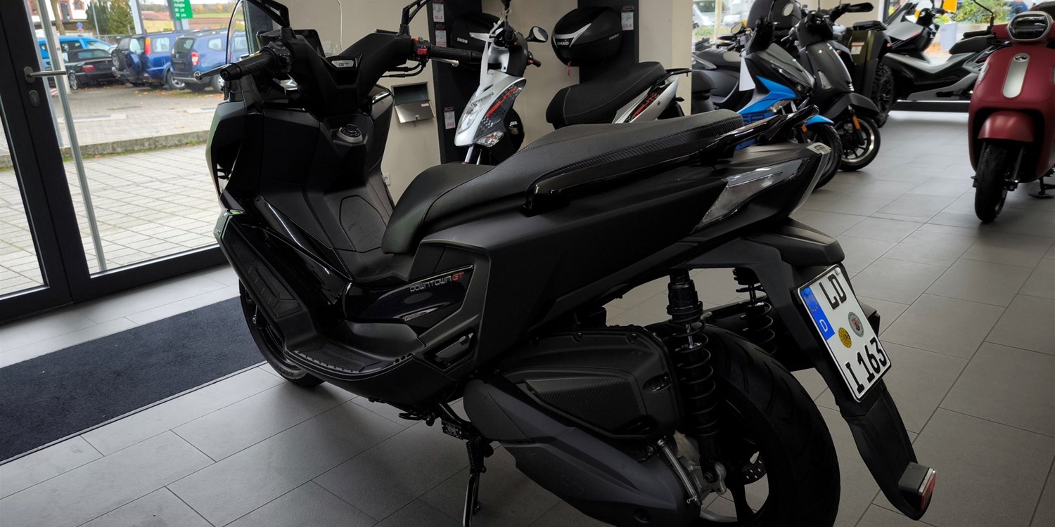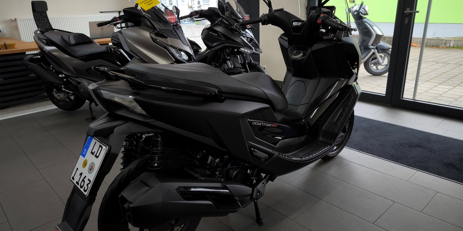 Der DOWNTOWN GT 350i TCS vereint sportliches Design mit kraftvoller Leistung und hohem Komfort ein Maxiscooter, der sowohl optisch als auch technisch Akzente setzt. Mit seiner dynamischen Linienführung, der markanten Frontpartie und dem modernen LED-Lichtkonzept strahlt er Selbstbewusstsein und Agilität aus. Die aerodynamische Form verbessert nicht nur die Fahreigenschaften, sondern verleiht dem GT auch eine elegante, zukunftsweisende Optik.