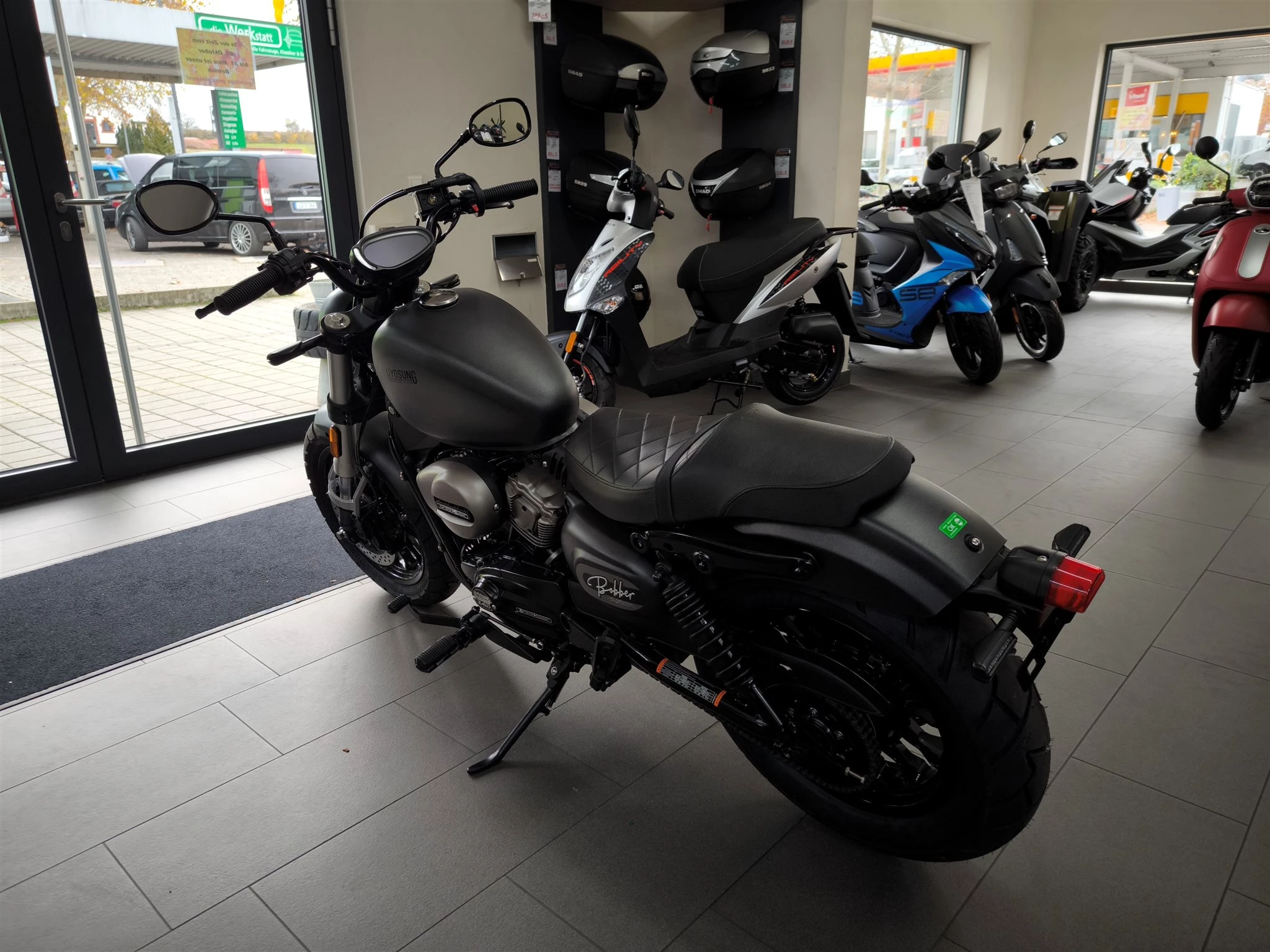 Die neue GV 125i S Aquila EVO ABS begeistert als ultimatives Bobber-Bike. Mit hochwertiger Upside-Down-Gabel für präzisen Fahrkomfort und integriertem ABS für maximale Sicherheit. Das Design mit breiten Reifen, niedrigem Sitz und edler Zweifarblackierung (black/silver matt oder black/crimson red glänzend) ist ein absoluter Hingucker.