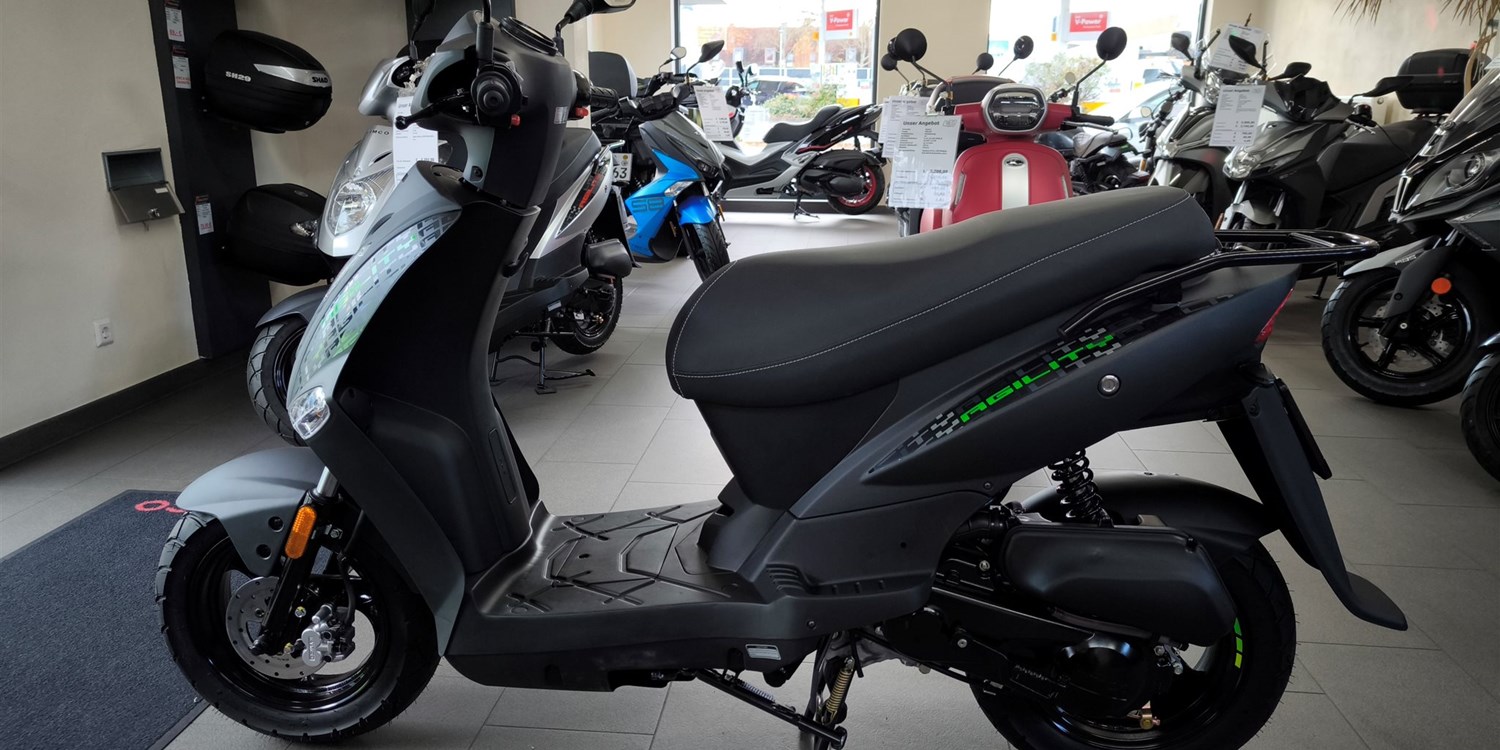 Neben den bewährten Modellen AGILITY S 50i, S 125i CBS und dem praktischen AGILITY CARRY 50i ergänzt nun auch der AGILITY 50 / MOFA wieder das Portfolio. Der 50-ccm-Roller überzeugt durch einfaches Handling, einen niedrigen Verbrauch und ein durchdachtes Gesamtkonzept ideal für tägliche Wege, spontane Besorgungen oder den entspannten Start ins Rollerleben.