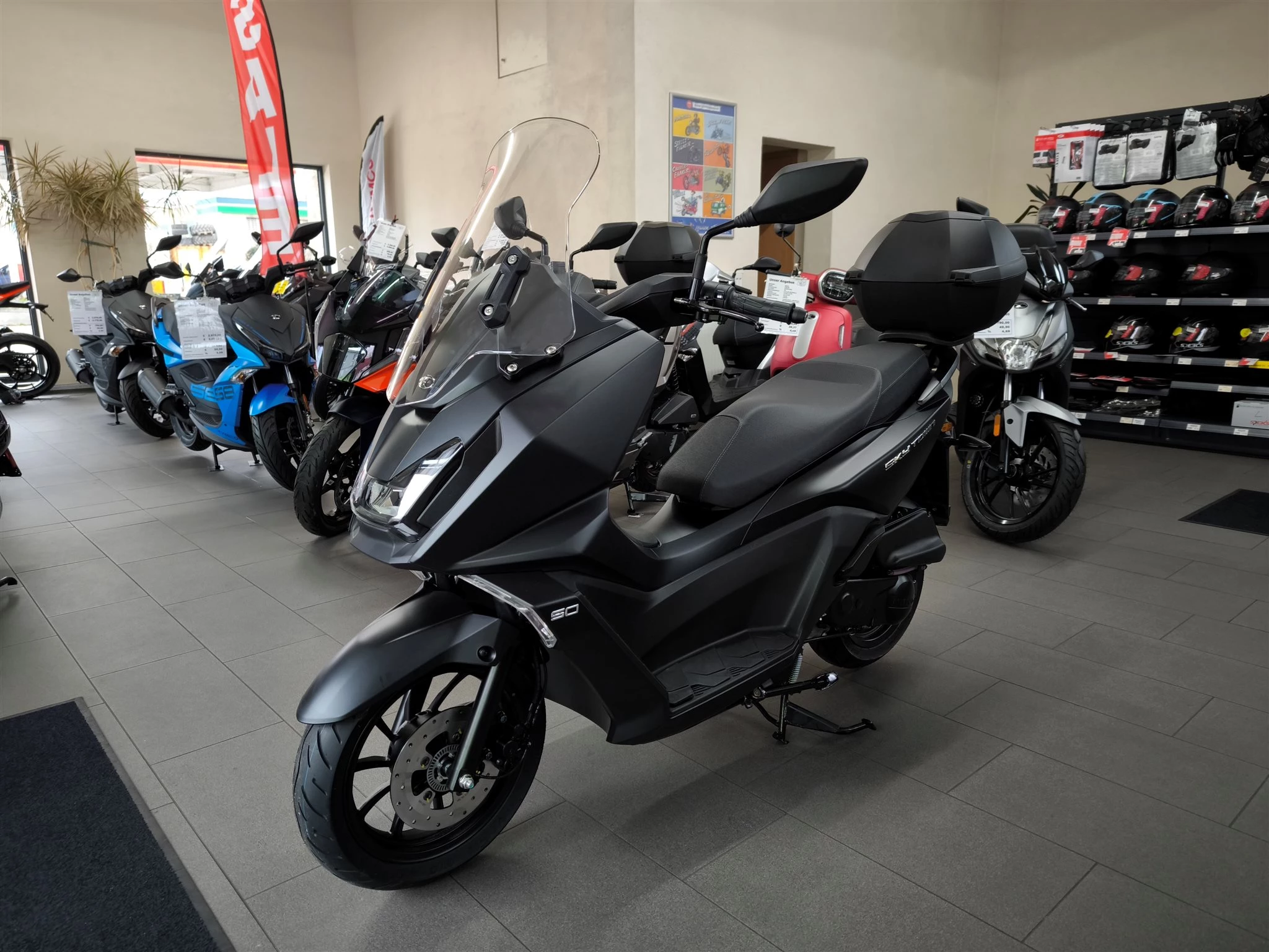 Der SKY TOWN 125i ABS verbindet dynamisches Fahrverhalten mit umweltbewusster Effizienz ideal für den urbanen Alltag. Der moderne 125-ccm-Motor mit 11 PS ist mit dem innovativen Multi-Vortex-System ausgestattet, das nicht nur die Emissionen reduziert, sondern auch den Kraftstoffverbrauch auf nur 2,5 Liter pro 100 Kilometer senkt. Dank Euro5+-Zulassung erfüllt der Scooter höchste Umweltstandards.
