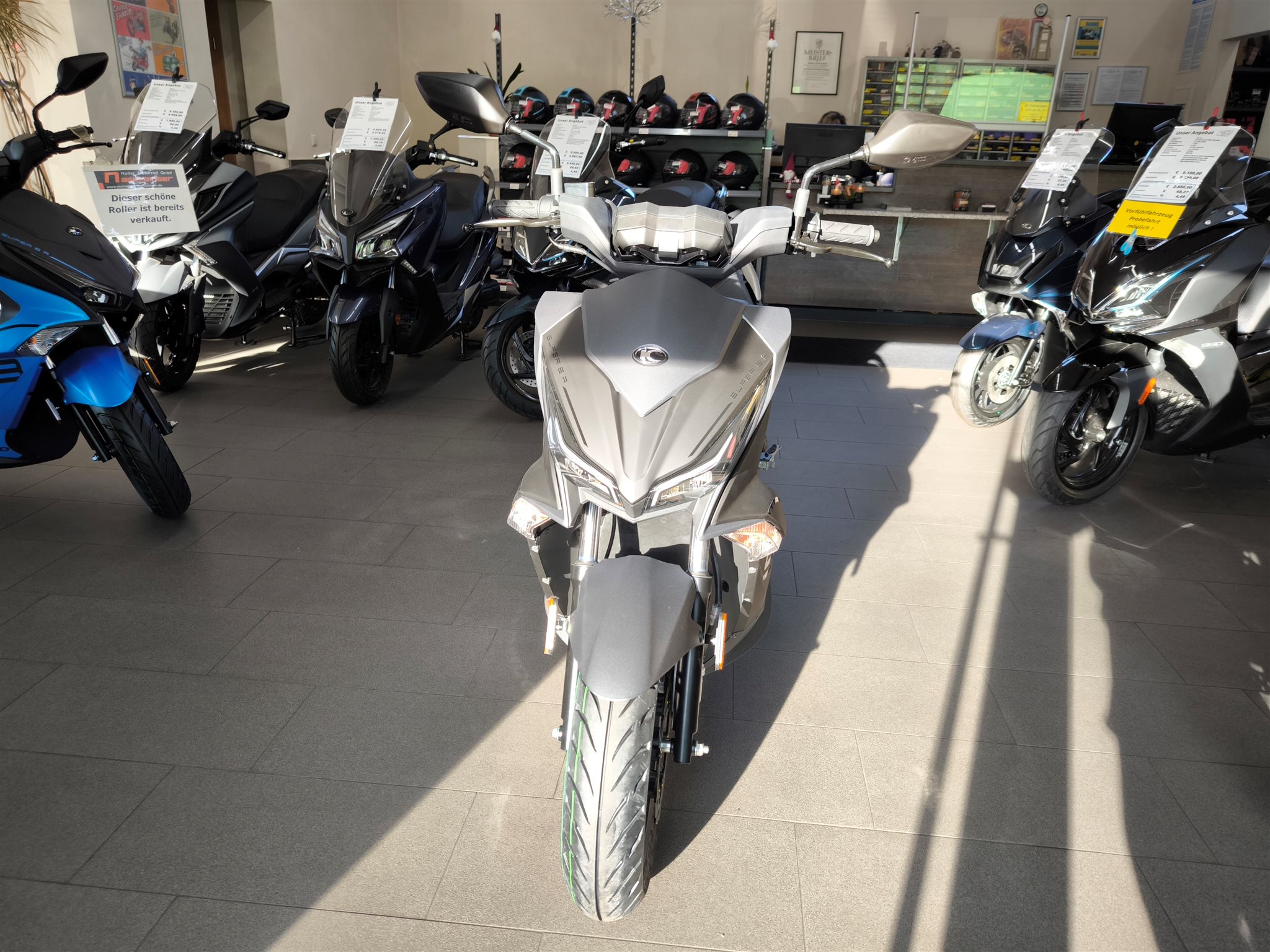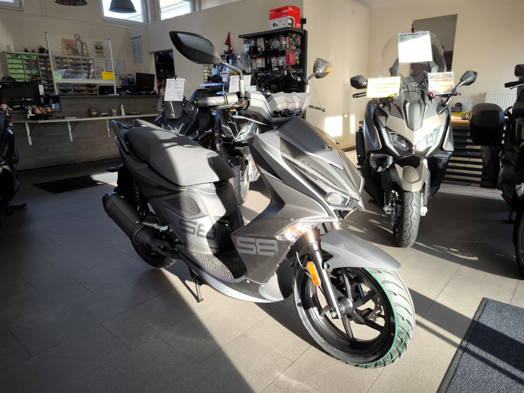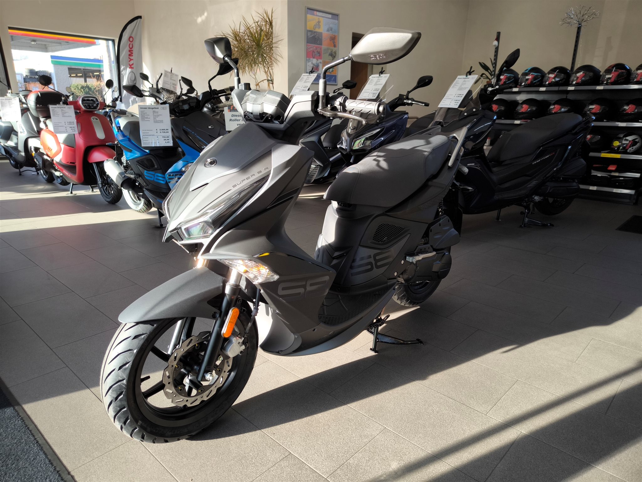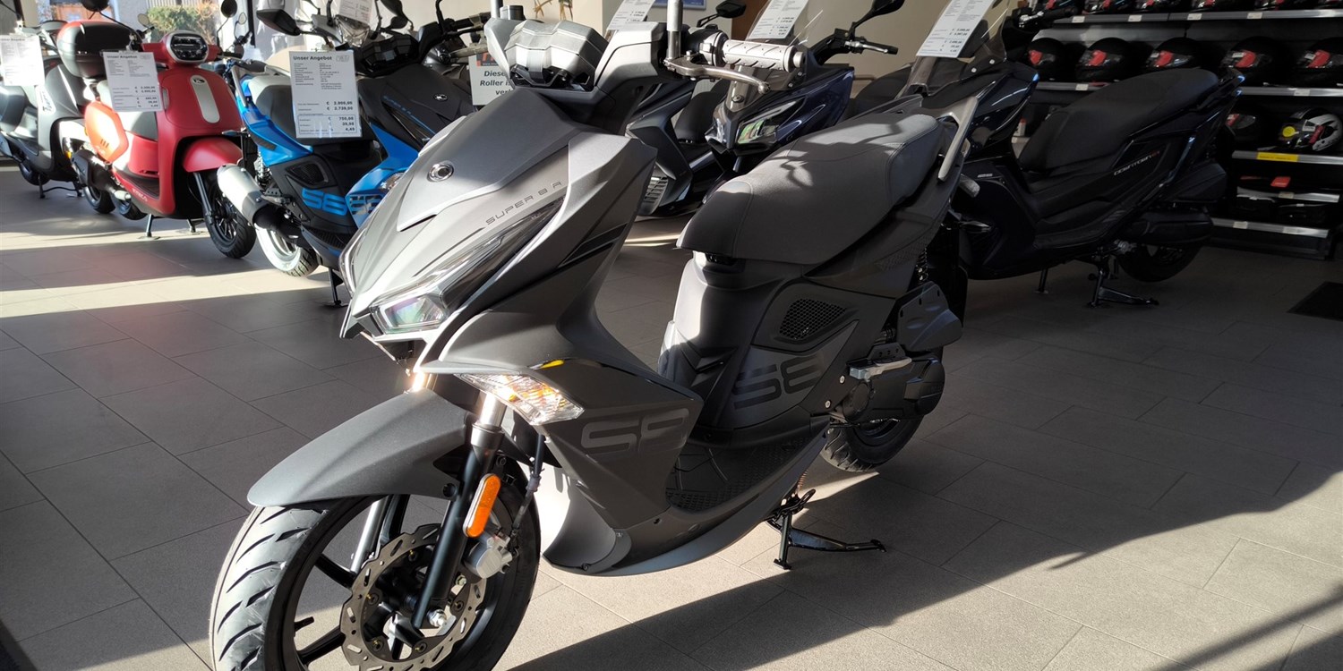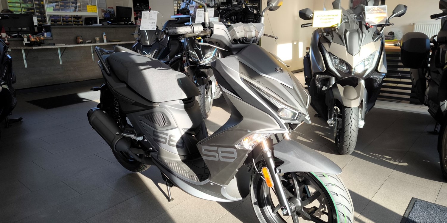 Der KYMCO SUPER 8 R 50 steht seit Jahren für pure Dynamik auf zwei Rädern als sportlichster 50-ccm-Scooter der Marke überzeugt er mit markantem Design, agilem Fahrverhalten und zuverlässiger Technik. Jetzt präsentiert sich der Klassiker mit modernisiertem Euro-5-Motor sowie frischem Look und bleibt dabei seiner sportlichen DNA treu.