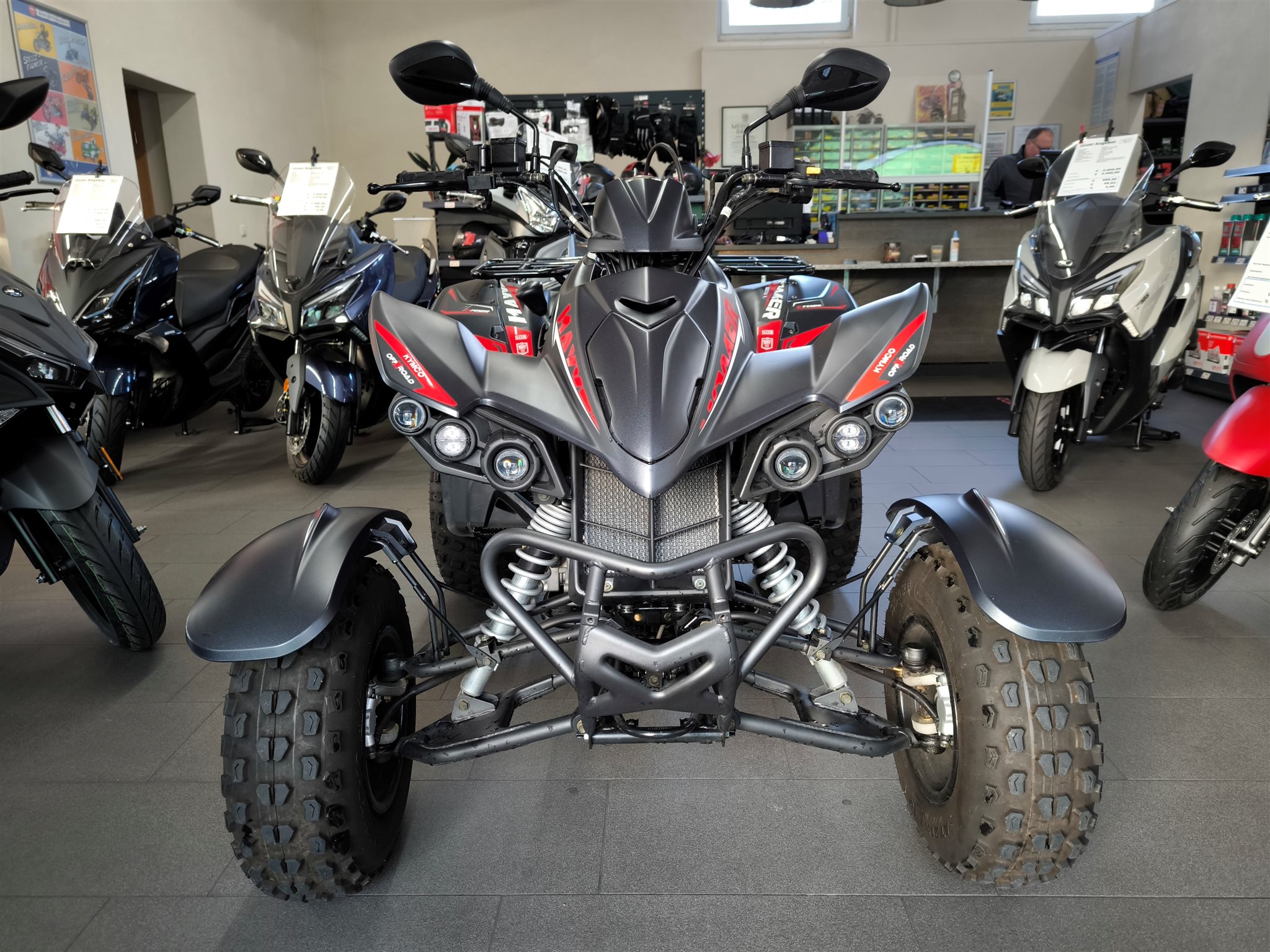 "Was hat das mit Quads zu tun? Nun, der Vergleich drängt sich auf. Seit mehr als 15 Jahren begleitet uns der MAXXER von KYMCO. Als 250er, als 300er, als Straßenflitzer oder Offroader, der zuvor schon mit der Bezeichnung KXR 250 ins Rennen geschickt worden war."
