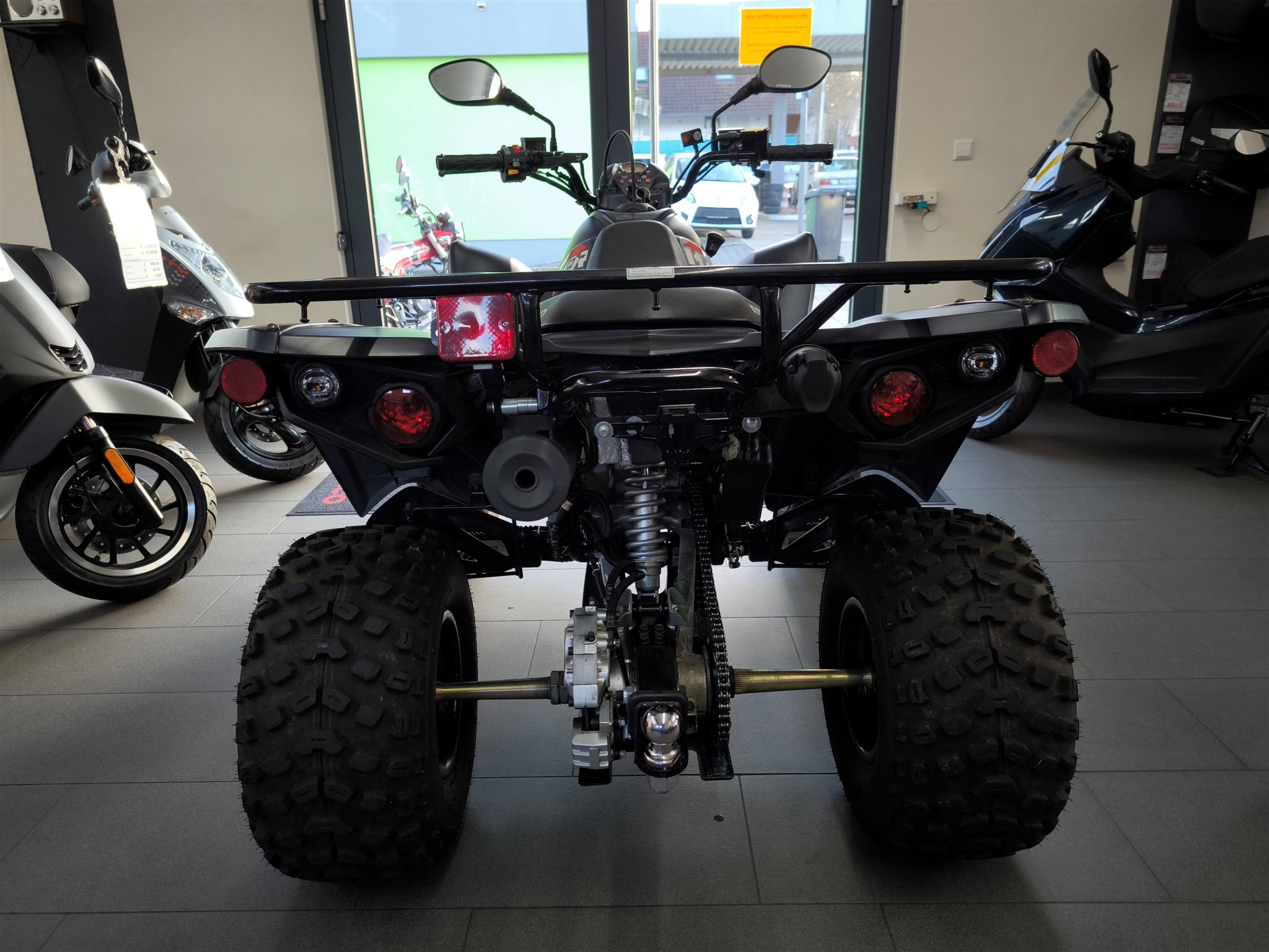 "Anhängerkupplung mit Elektrik und Nebelschlussleuchte gehören ebenso zu den vorgeschriebenen Ausstattungsmerkmalen, wie der Rückwärtsgang und die Radabdeckungen. Das leidige Thema um letztere haben die Konstrukteure bei KYMCO gut gelöst. Sie fügen sich im Grunde gut ins Design ein."