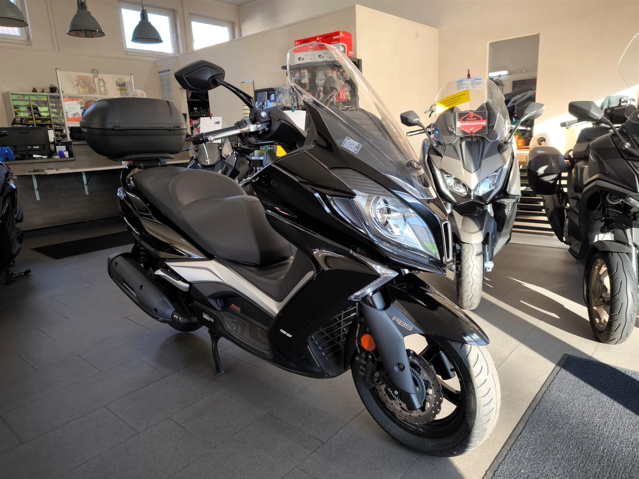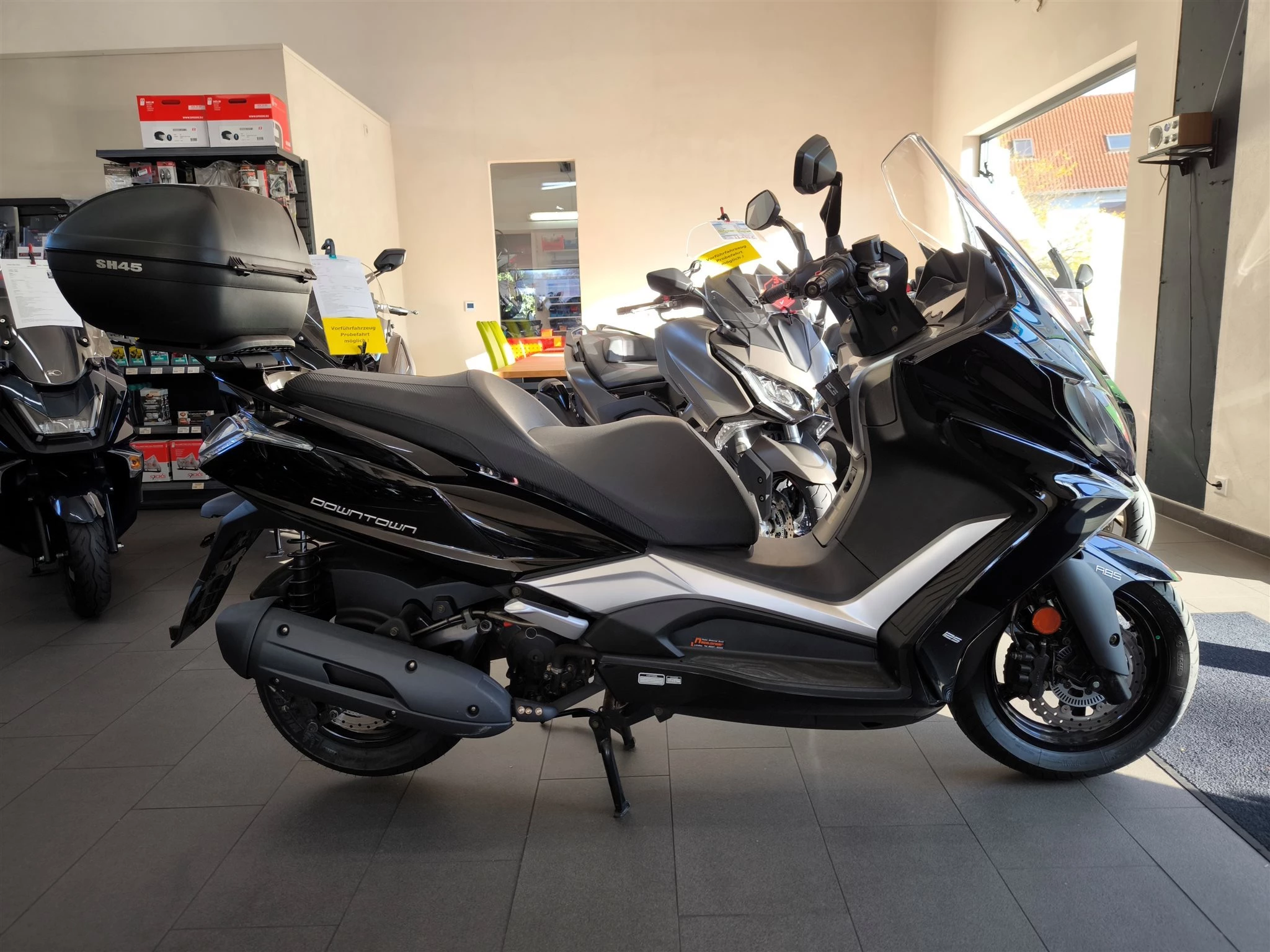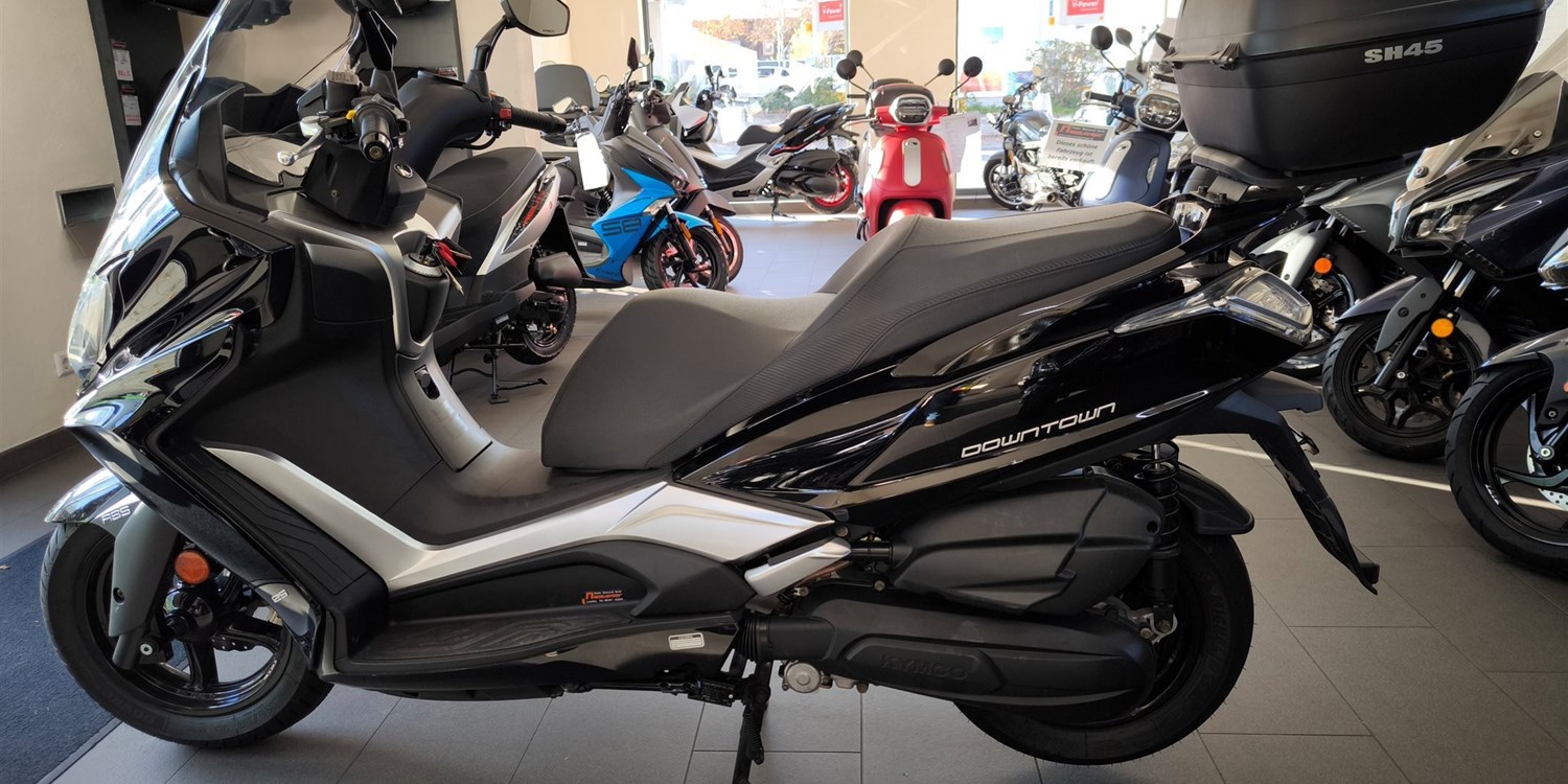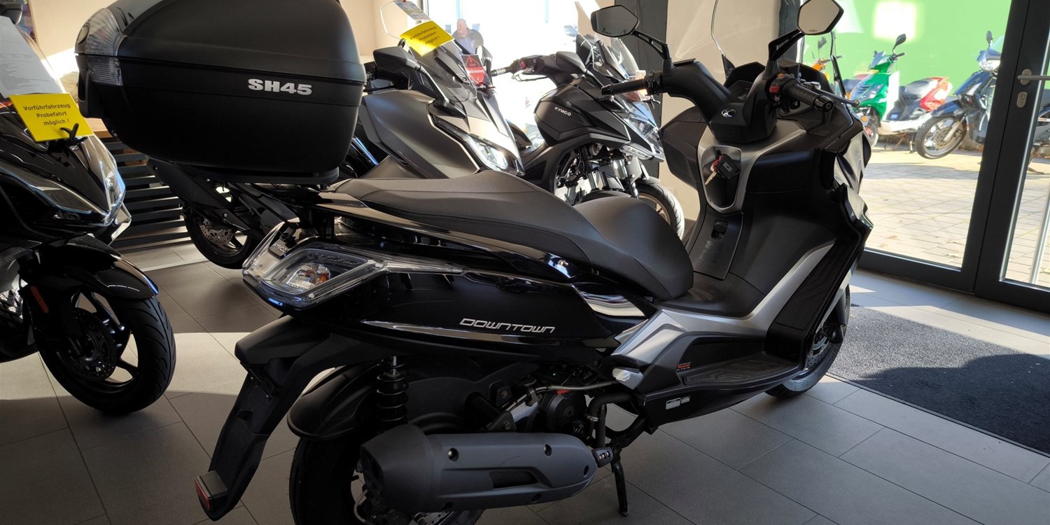 Mit dem NEW DOWNTOWN setzt Kymco neue Maßstäbe im Bereich der 125er Touring Fahrzeuge, was Komfort, Technik, Verarbeitung und Design betrifft. Der NEW DOWNTOWN 125i ABS bietet alle Vorzüge seines großen Bruders, dem NEW DOWNTOWN 350i ABS, und punktet mit großzügigem Platzangebot für Fahrer und Sozius, jede Menge Leistung für ein 125er Modell und modernster Technik in der Einsteigerklasse. Die Neuauflage des DOWNTOWN schafft den Spagat Fahrkomfort auf höchstem Niveau und sportlicher Agilität mit Leichtigkeit. Er verfügt über exzellentes Kurvenverhalten, anatomisch geformte Sitzbänke, ein großzügiges Staufach, zwei Handschuhfächer mit USB-Anschluss, taghelle Scheinwerfer und vieles mehr.