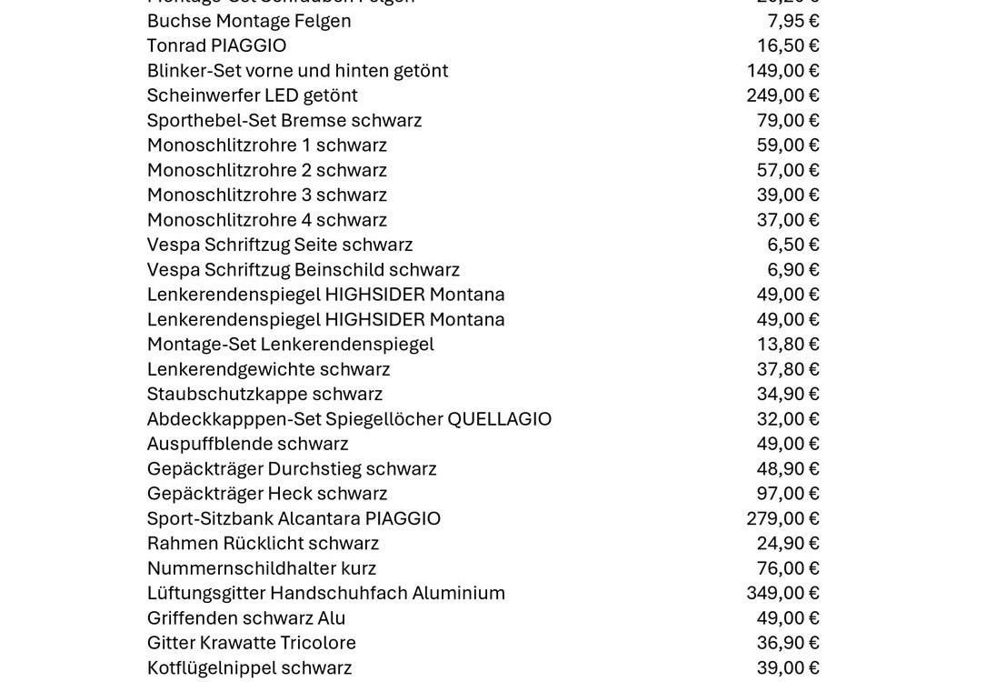 Rücklichtrahmen, Sozia-Fußrasten, Vespa-Schriftzüge, Varioabdeckung,