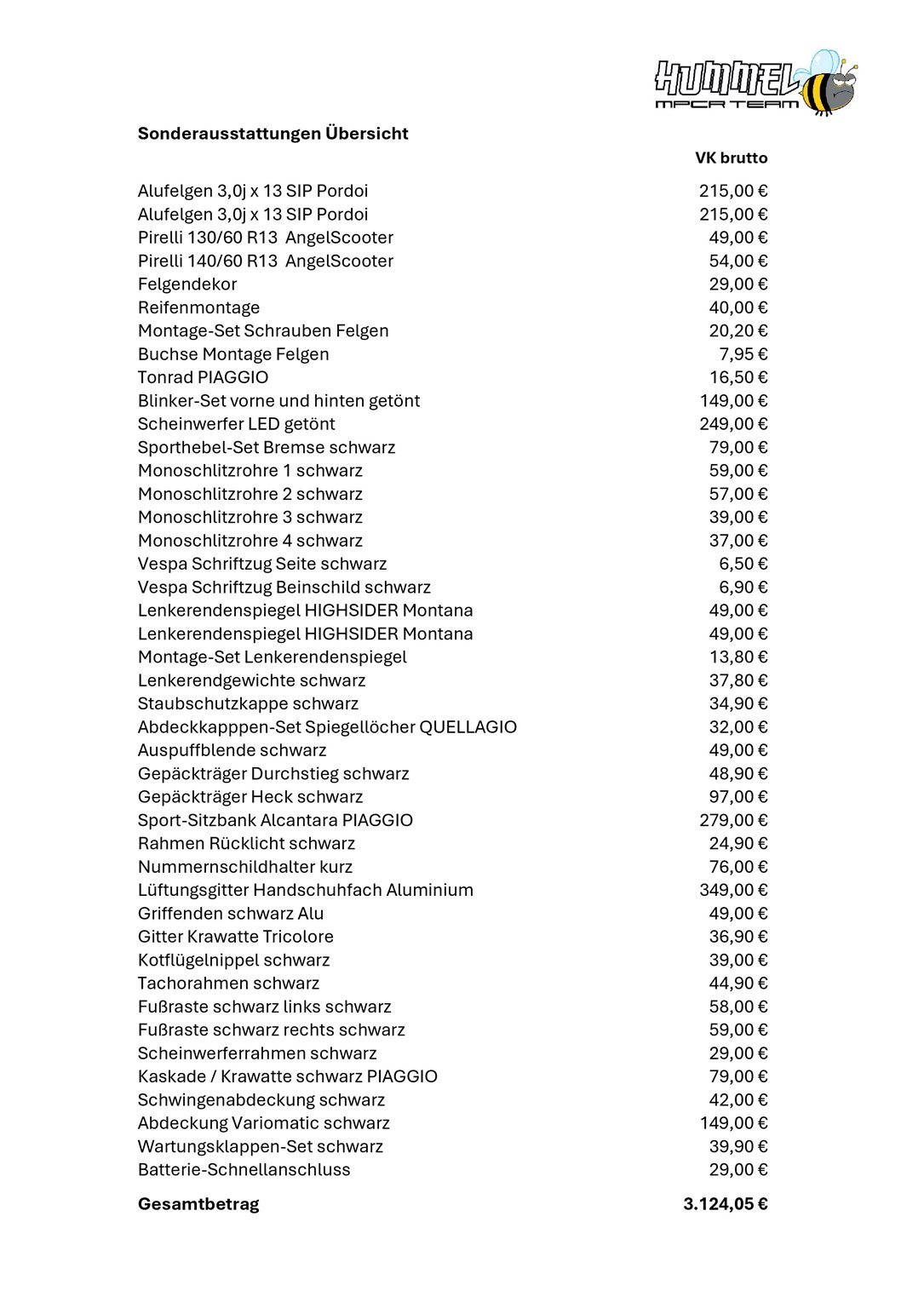 Sonderausstattung: € 3.124,05 inkl. Mwst.