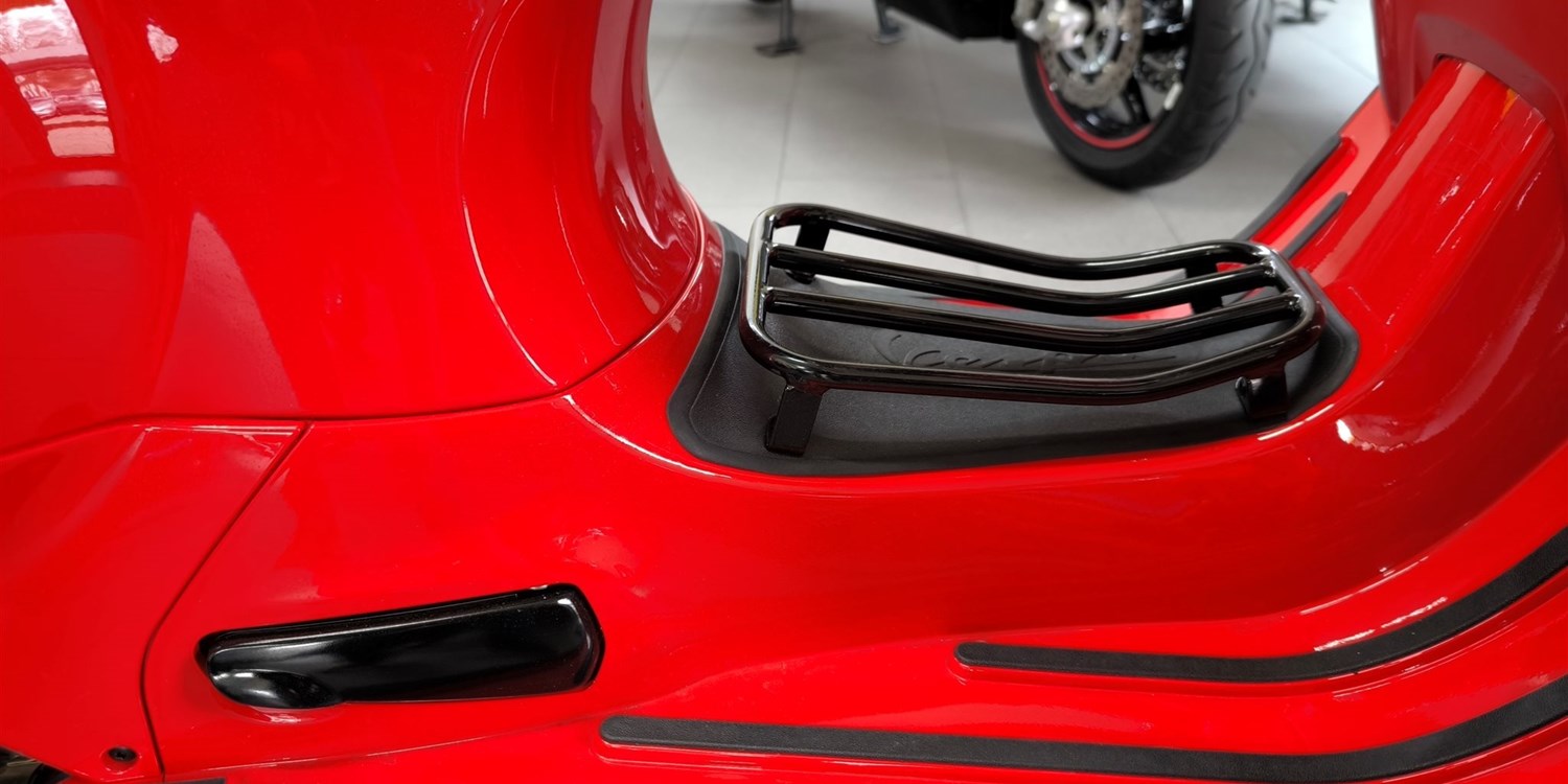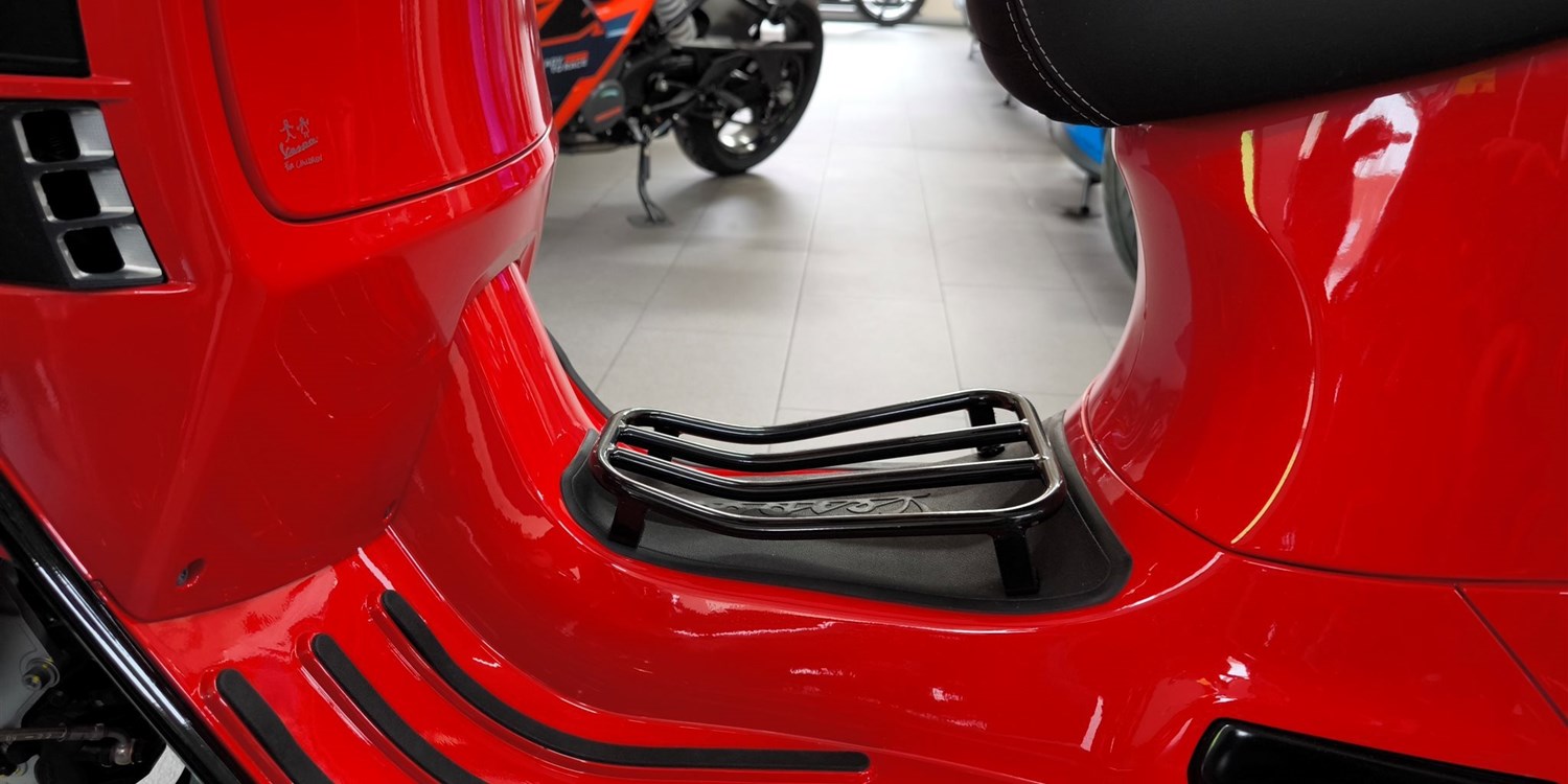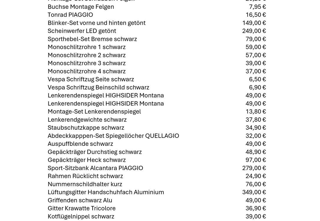 Rücklichtrahmen, Sozia-Fußrasten, Vespa-Schriftzüge, Varioabdeckung,
