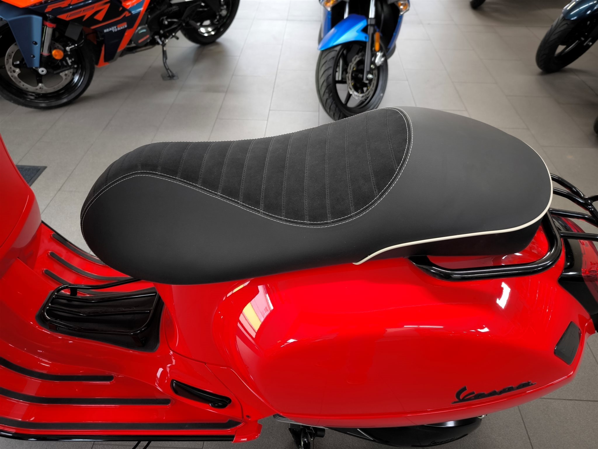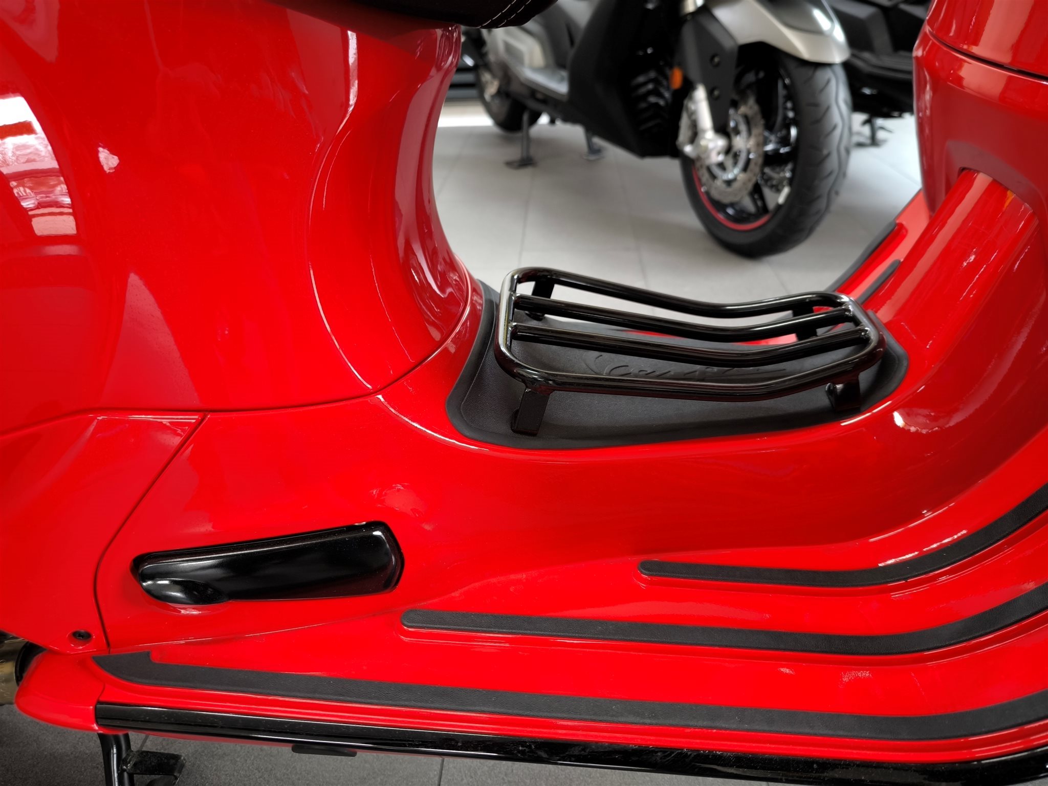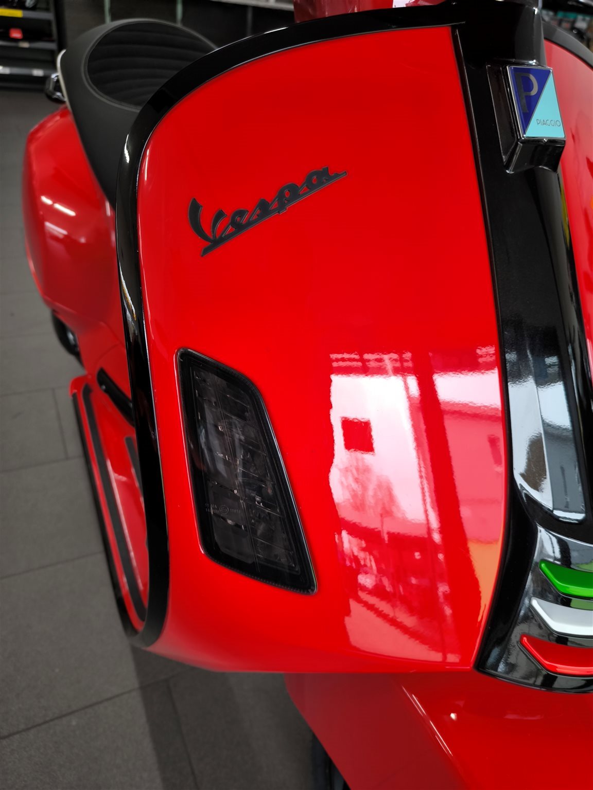 Rücklichtrahmen, Sozia-Fußrasten, Vespa-Schriftzüge, Varioabdeckung,