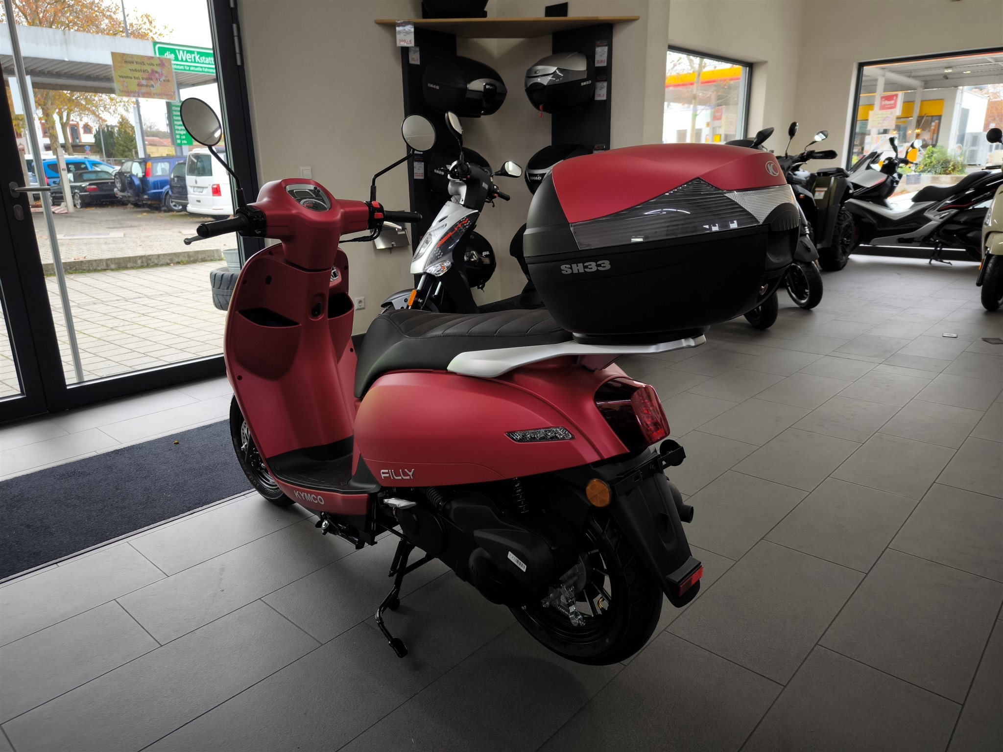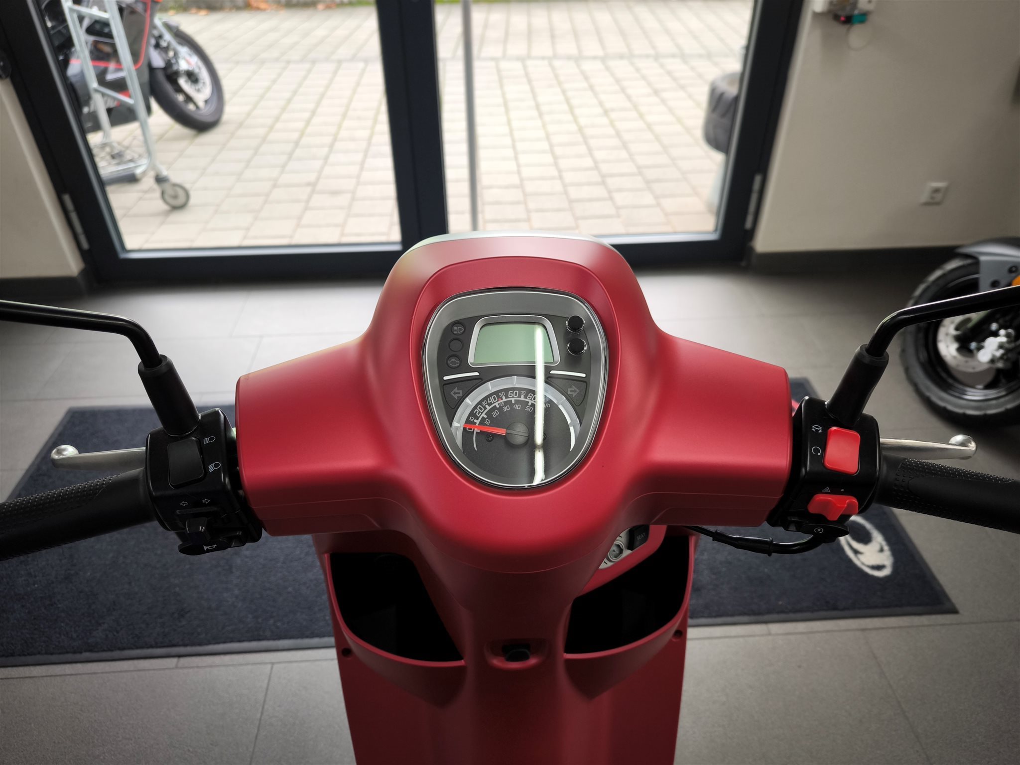 Das minimalistische Design, die schlanke Bauweise und das geringe Gewicht machen den FILLY 50i besonders wendig perfekt für enge Gassen und zügiges Manövrieren im dichten Verkehr. Ein übersichtliches Cockpit mit analog-digitalem Display sorgt für schnellen Überblick, während moderne LED-Leuchten die Sichtbarkeit bei Tag und Nacht deutlich erhöhen. Praktisch: Unter der Sitzbank findet sich ausreichend Stauraum für Einkäufe oder Taschen, zusätzlich sorgt das serienmäßige Topcase für mehr Flexibilität im Alltag.