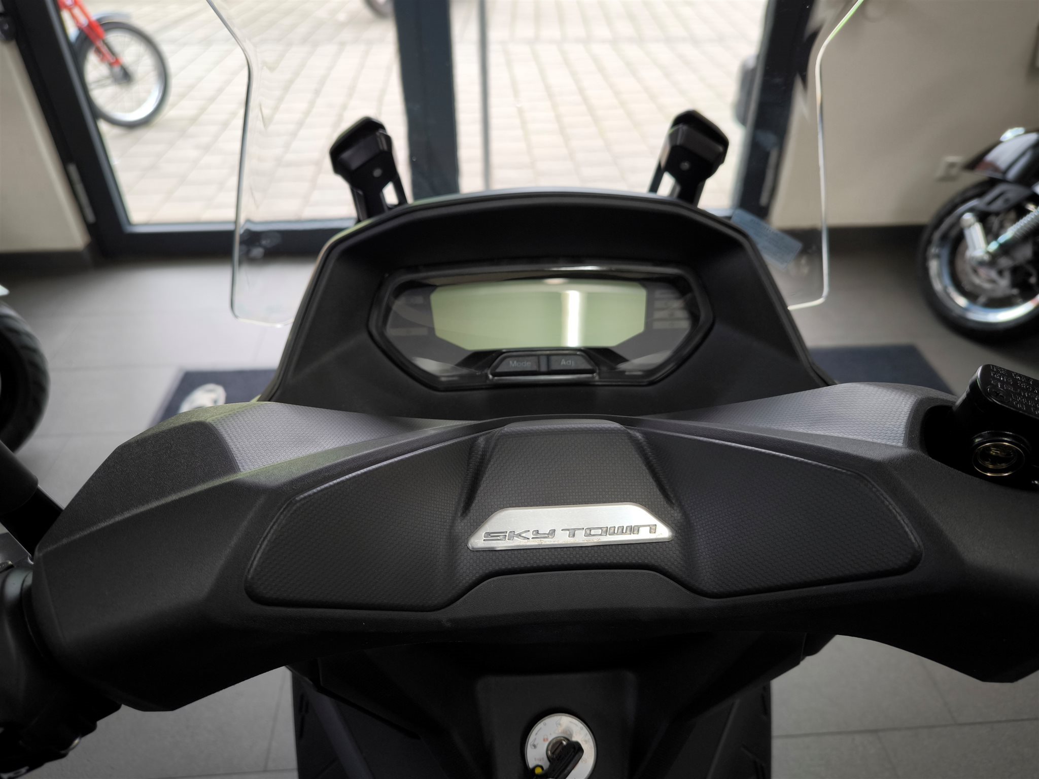 Im serienmäßigen Topcase findet sich Platz für Helm oder Einkauf und unter der Sitzbank passt sogar ein Integralhelm. Der KYMCO SKY TOWN 50i: gemacht für alle, die mehr von ihrem Stadtroller erwarten.
